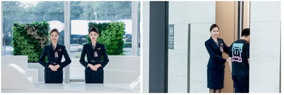結合星河雙子塔的建筑元素,統一定制員工服裝及服務視覺,禮遇每一位到來的客戶。