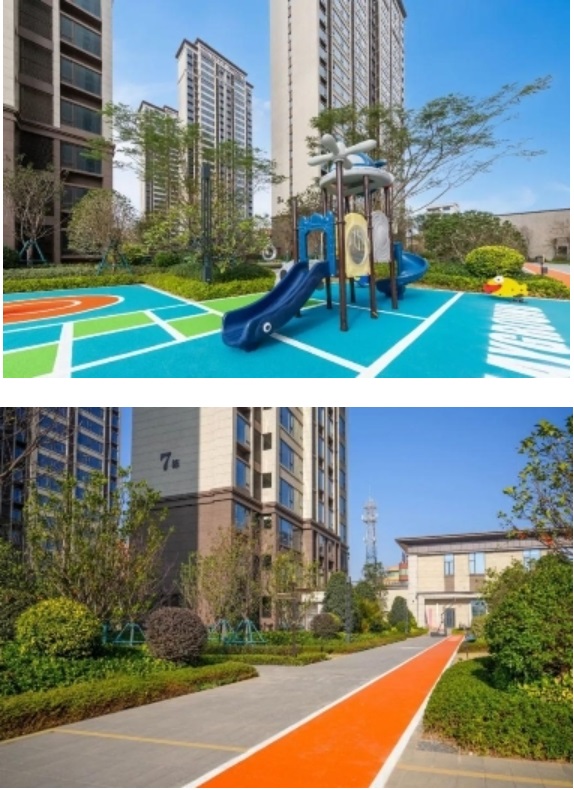 園林造景之外,項目更設置約280m健康慢跑道,串聯各個景觀節點,陽光草坪、兒童樂園、老年康體花園、多功能景觀會客廳、活力球場運動區等全齡配套體系,提供鄰里相聚,家人共樂的溫馨場地。