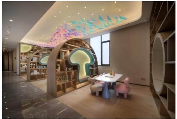 親子教育區:圍繞沉浸式親子互動展開的娛樂區,童趣、歡樂的裝修視覺語言,在這與孩子一同閱讀、繪畫、拼搭積木,娛樂設施圓角化處理,更加安全,寓教于樂的場景搭建,實現家庭歡聚的“圓滿”。