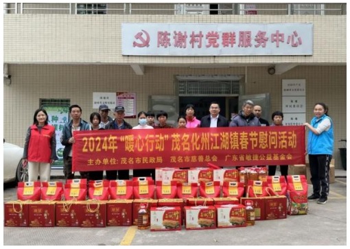 春節前夕,在廣東省慈善總會的指導下,敏捷集團、敏捷公益基金會攜手茂名市民政局、市慈善總會在化州市江湖鎮開展2024年“暖心行動”春節慰問活動,為當地低收入困境家庭送去慰問金、新春禮包和真摯的節日祝福。