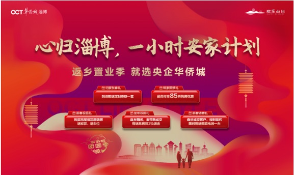 春節的種種習俗,都離不開對家的祝福與期盼。家是可以隨時回歸的港灣;家是無需等待的溫暖懷抱。淄博華僑城歡樂山川項目深諳生活真諦,推出“心歸淄博,一小時安家計劃”,從走進售樓處那一刻起,最快一小時即可收獲心儀房源。真正讓歸家不再遙遠、讓安居不再等待,以開闊、開放之姿態,攜手業主共創明日生活,同祝新春大吉。