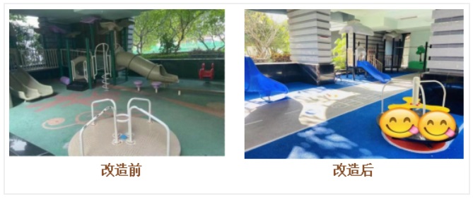 針對老舊的娛樂設(shè)施,物業(yè)服務(wù)團(tuán)隊將其拆除并重新添置安裝,滿足居民休閑需要,為居民創(chuàng)造更宜居的生活環(huán)境。