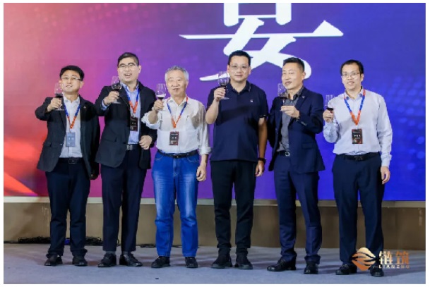住建部市場監管司原副司長劉哲先生;德國貝朗(中國)副總裁楊磊先生;鏈筑分會副秘書長、華南區秘書長李守飛先生;鏈筑分會副秘書長、華東區秘書長鮑磊先生;鏈筑分會副秘書長張旭先生與馬學明秘書長共同為華南站論壇答謝晚宴祝酒。