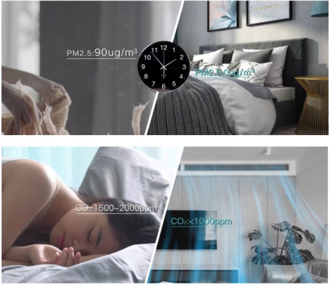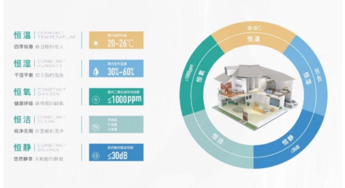 中綠東岳府“五恒”的核心工作原理,是通過高效熱回收新風系統,有效回收房間內的熱度和濕度,使室內溫度保持在20-26度之間、濕度保持在30%-60%之間,其次,被動式建筑外窗可隔絕30-45分貝以下的噪音,同時極大程度減少了對流熱;然后,項目采用高效外保溫系統,減少了室內冷熱量向外的散失,所有戶間隔墻、樓板均設置保溫層,有效的防止戶間傳熱,避免室內溫度的波動,最后,項目的無熱橋設計大幅提高墻體保溫效果,避免居住過程中內墻結露、發霉甚至滴水,提升居住舒適度。最后是氣密性,項目氣密性效果是普通建筑10倍,有效防止室外冬季冷風和夏季熱風通過縫隙滲透到室內,保持室內溫度、濕度穩定,有效隔絕室外的灰塵、霧霾。