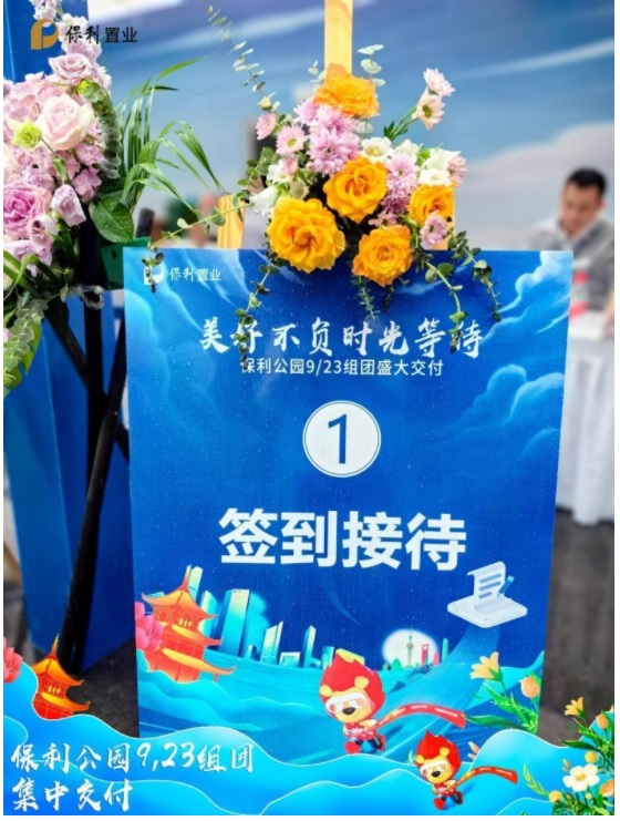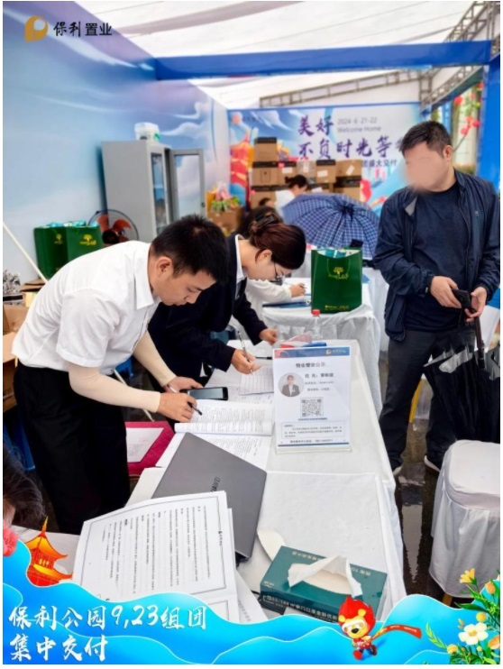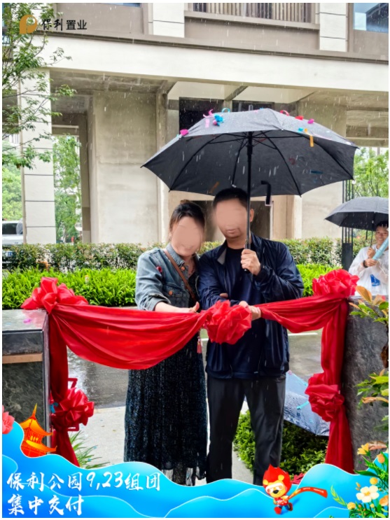 早上十點,業主們陸續抵達現場,工作人員在入口處熱情迎接每一位業主,為他們發放交付資料和精美禮品。業主們在主題背景板前合影留念,記錄下這一重要的時刻。背景板上“美好不負時光等待,貴陽保利公園9/23組團盛大交付”字樣格外醒目,傳遞出保利置業對業主的美好祝愿。