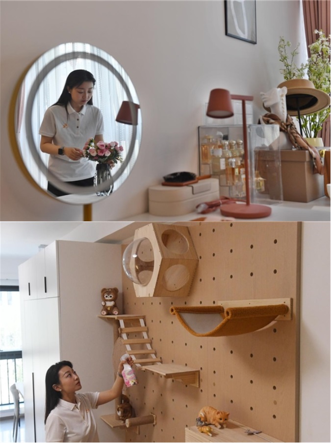 該企業負責人介紹,項目突破性地運用了定制主題房間的定位,助力活力社區氛圍搭建。主題房分為寵物房、女神房和電競房,根據戶型、樓層單獨設置,滿足了不同租客的個性化需求。如寵物房在客廳電視墻位置設置了一整面墻的貓爬架;女神房專門配設了獨立的梳妝臺和智能美妝鏡,還擁有令人咋舌的超大收納空間;電競房則專門打造了集學習、休閑為一體的獨特X空間,加入升降桌和電競椅,真正讓“賽博朋克”走進現實。