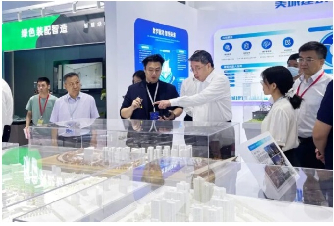 “綠色智能建造”展區(qū)依托美城建筑打造,重點(diǎn)展示公共建筑、城市更新、人居住宅、產(chǎn)業(yè)園區(qū)、市政工程等領(lǐng)域的綠色智能建造能力。