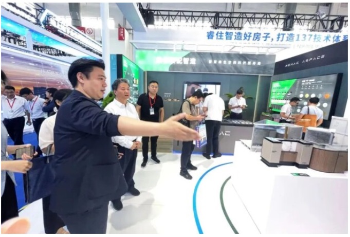 ▲秦海翔到訪睿住天元展區(qū),了解睿住建筑科技綠色裝配化內(nèi)裝產(chǎn)品