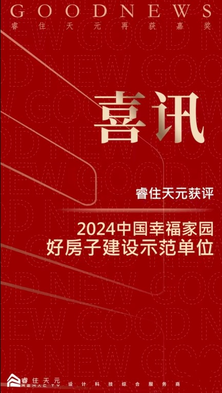 鑒于睿住天元在建設生態宜居城市、韌性城市、數字住建、完整社區建設、產學研融合發展等方面取得的系列成果,特別授予睿住天元“2024中國幸福家園好房子建設示范單位”稱號。