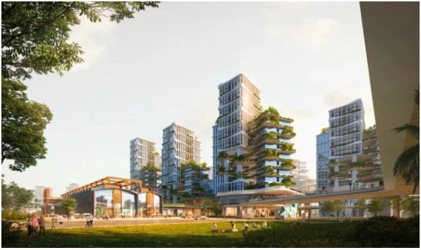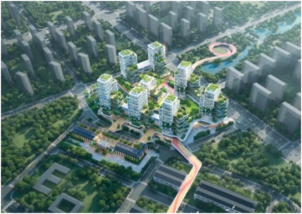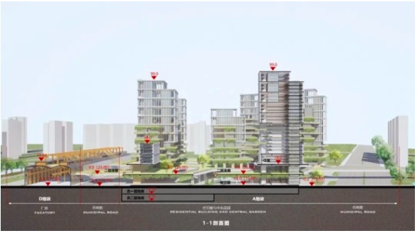 以科技、歷史、綠色為載體,通過嵌入多元復合功能板塊、綠色滲透打破自然與城市的界限、智慧社區底座數字化搭建等設計手法,打造產業融合、文脈傳承、居住升級、個性與品質的復合社區,符合新時代住房高質量發展“適用、經濟、綠色、美觀”的建筑方針。