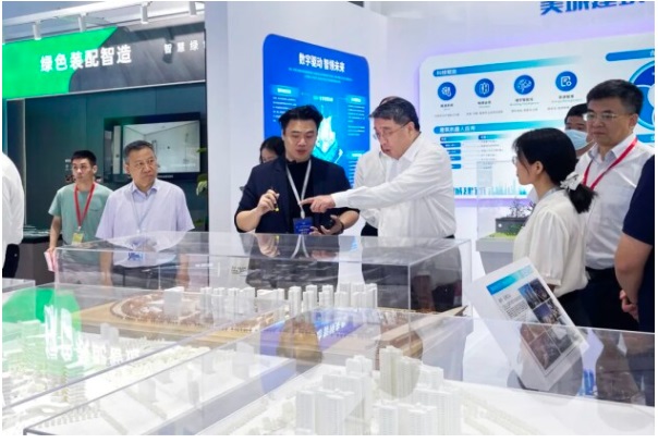 于6月27日,睿住天元攜“好房子137技術體系”亮相第22屆中國國際城市建設博覽會,中央紀委國家監委駐住房和城鄉建設部紀檢監察組組長、部黨組成員宋寒松,部黨組成員、副部長秦海翔蒞臨展位參觀,并認真聽取睿住天元總經理/院長張曉聰講解數字化設計、綠色低碳設計等方面先進技術理念和最新研究成果,深入了解“好房子137技術體系”內容,并詳細詢問基于該體系打造的“云悅江山”項目情況,充分肯定我們在助力住房城鄉建設事業和科技發展作出的貢獻。