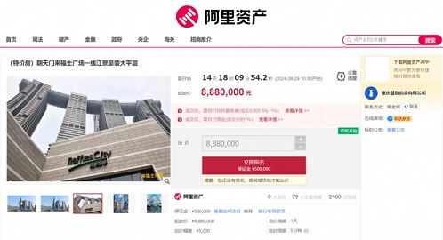 該標(biāo)的起拍價888萬元,將于8月29日在阿里資產(chǎn)房產(chǎn)平臺開拍,參拍需繳納保證金50萬元,加價幅度為5000元或整倍數(shù)。