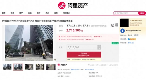 該標(biāo)的位于38層,總面積226.28平方米,起拍價約271萬元,將于9月1日在阿里資產(chǎn)房產(chǎn)平臺開拍,參拍需繳納保證金15萬元,加價幅度為3000元或整倍數(shù)。
