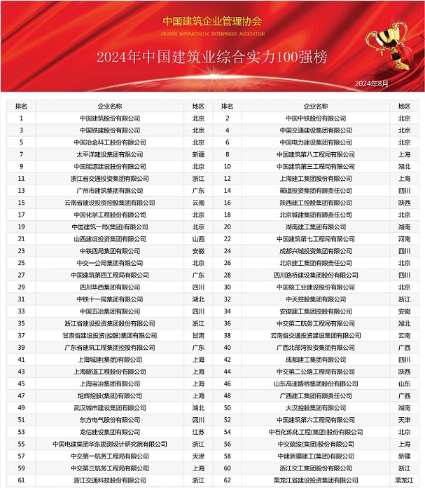 在經濟發展的浪潮中,建筑業始終是國家建設的中流砥柱。近日,由中國建筑企業管理協會隆重發布的“2024年中國建筑業綜合實力100強榜暨中國50家最佳建筑承包商”,這不僅是對建筑企業的一次高度認可,更是為行業發展樹立了新的標桿。