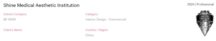 近日,2024美國繆斯設計大獎Muse Design Awards 第二季獲獎名單揭曉,經過評審團成員專業、嚴格的評選,楊佴設計作品《Shine醫療美容機構》從全球眾多參賽作品中脫穎而出,成功斬獲2024Muse Design Awards商業類別銀獎。