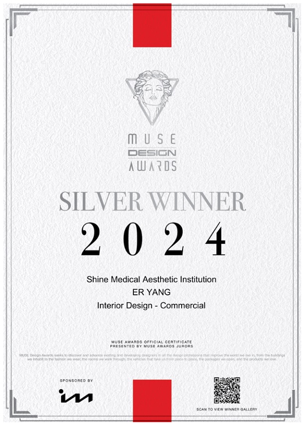 ● 2024 榮獲美國繆斯設計獎MUSE DESIGN AWARDS 銀獎 -Shine醫療美容機構
