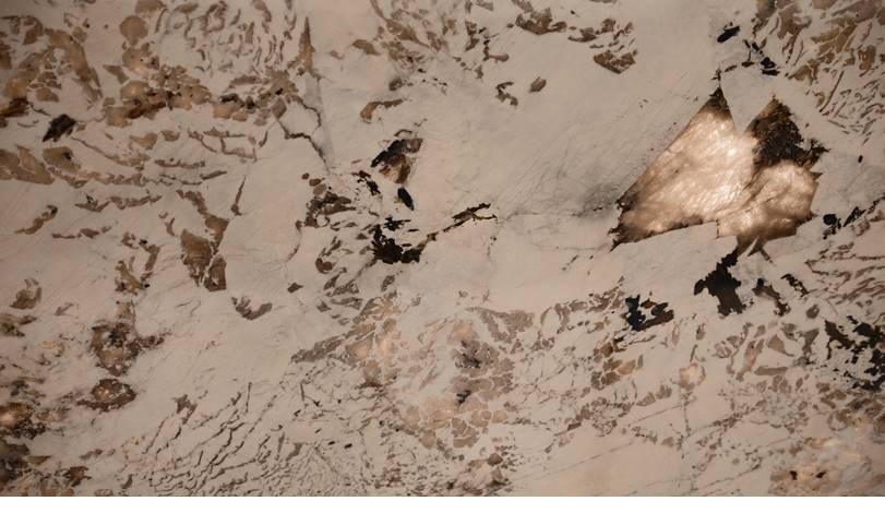 從現場外部看,大門奢華氣派,約73米的藝術門廊,約9米挑高尺度,璀璨星空頂借意“俊采星馳”,幻影藍花崗巖、普拉達綠奢石與愛馬仕灰大理石等多種奢石匠造,這不僅是建筑大門,更是一座藝術裝置。