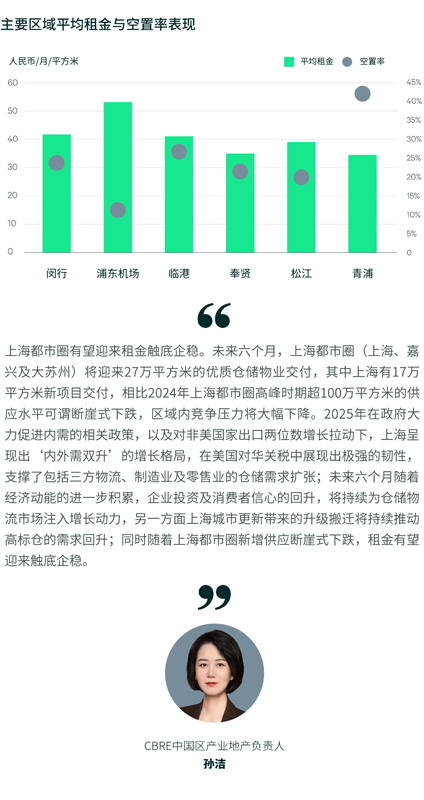 全市空置率環(huán)比小幅上升至29.0%,其中青浦區(qū)實(shí)現(xiàn)連續(xù)三個(gè)季度空置率下降,除嘉定、青浦、金山和臨港空置率高于25%,其他區(qū)域空置率均低于25%。租金環(huán)比跌幅收斂至4.3%,租金報(bào)價(jià)跌至每月每平方米37.7元。其中前期跌幅較大的子市場(chǎng)如金山和青浦環(huán)比跌幅有所收窄,靠近市中心的子市場(chǎng)如閔行租金補(bǔ)跌,浦東機(jī)場(chǎng)板塊、臨港和普陀報(bào)價(jià)穩(wěn)定。