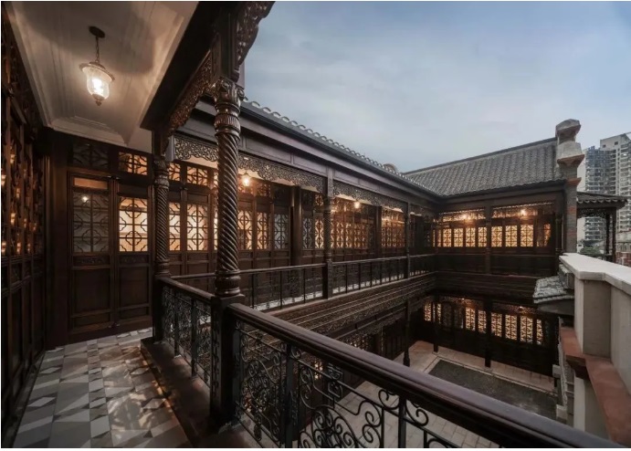 老建筑徹底拆除之后,開發(fā)商上海城投聯(lián)合設(shè)計方AAI,用鋼筋水泥、新磚等全新的建筑材料,并聘請老師傅負(fù)責(zé)木雕藝術(shù),復(fù)刻了“趙公館”的外貌特征。之后,這棟復(fù)建的建筑以“露香園文化展示中心”的面貌出現(xiàn)。