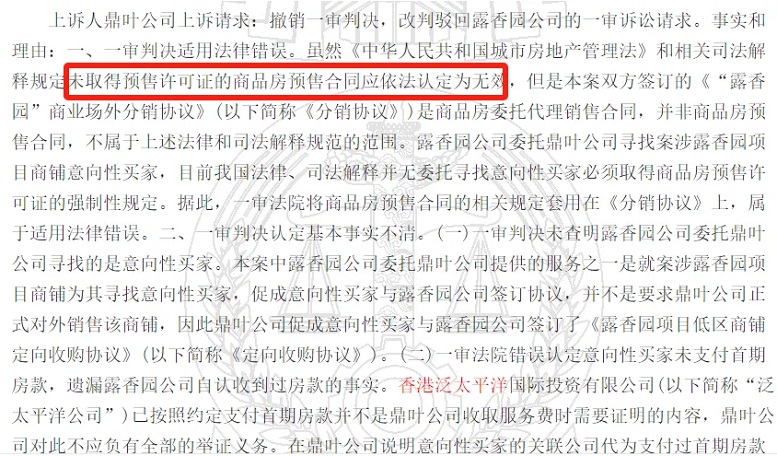 至于泛太平洋公司為何會就《收購協(xié)議》提起訴訟,從另一起案件中也能看出端倪。裁判文書網(wǎng)案號(2020)滬02民終6203號判決書顯示,在露香園與泛太平洋公司簽訂收購協(xié)議時,其低區(qū)商鋪并未取得商品房預(yù)售許可證。