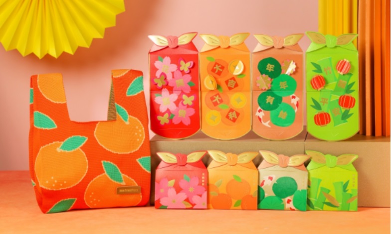 除了四大吉祥利是封及揮春,新城市廣場更推出「如意『桔』祥利是袋」,以亮眼橙色配上象征吉祥與富足的大桔圖案,并選用潮流大熱的針織手挽袋款式,輕便小巧又實用,配襯新年裝束拜年,喜慶感倍增。