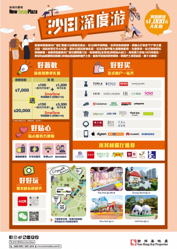 新鴻基地產的旗艦商場,集餐飲購物、休閑及娛樂于一身。商場由一期及三期組成,連同全港最大家居商場HomeSquare總面積約20萬平方米,成為全港最大商場之一。商場匯聚逾350間著名商店、近50間不同風味、各具特色的食肆、多個主題樂園以及全新界最大規模的影院,為您帶來多姿多彩的一站式購物娛樂消閑新體驗。香港沙田新城市廣場位于沙田區核心區域,港鐵(東鐵線)沙田站A出口直達,更設有由深圳灣及蓮塘口岸直達商場的跨境巴士線,交通四通八達,旅客不論選擇乘坐港鐵、跨境巴士或是高鐵,都十分便利。