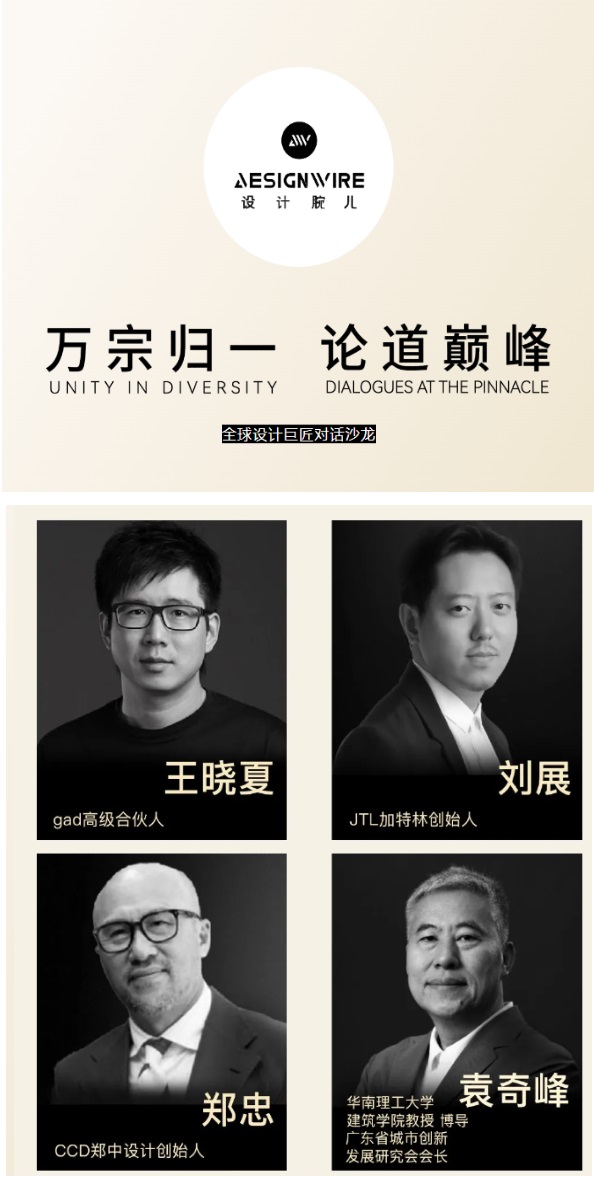 論壇由保利玥璽灣與國際權威地產與設計媒體Designwire設計腕兒聯合舉辦。「萬宗」代表多元思想、頂尖智慧以及不同領域的權威,「歸一」則寓意在設計中回歸極致好生活的本質、自然、永恒。