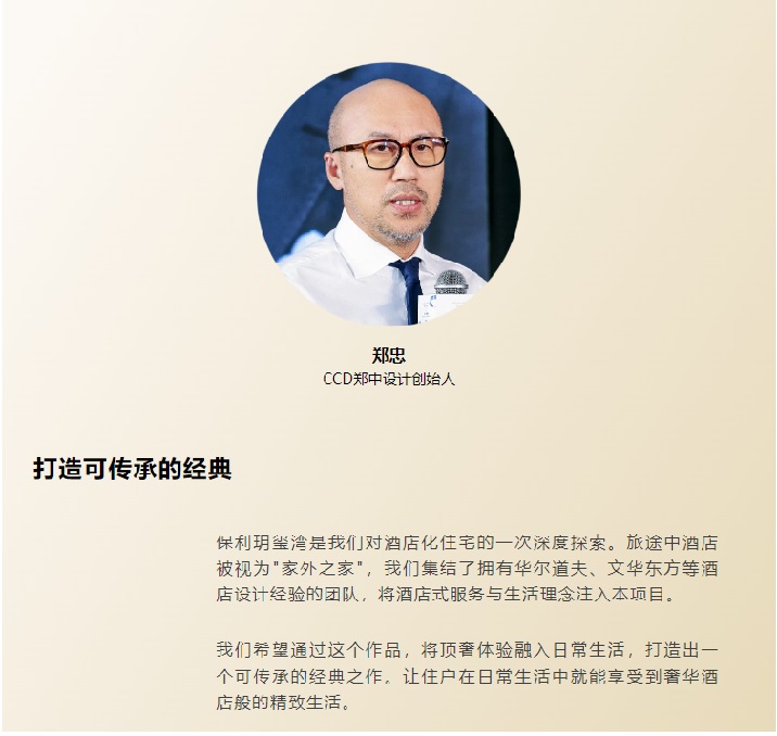 “我們以好生活為綱,融匯保利33載開發智慧,以三項定義未來的‘斷代式’創新,致力于打造出隨著時間而愈發珍貴的保利好房子。這不僅僅是一座建筑,更是我們對土地的尊重,對文化的理解,以及對未來理想生活的誠摯獻禮。”保利玥璽灣項目公司執行總經理龔偉說。