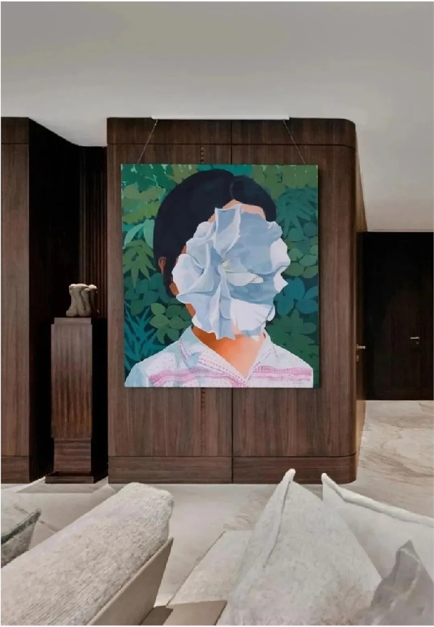 歸家一進院的水庭底部由安哥拉黑奢石打造,曲水納福,門庭富貴。兩旁六顆紅果冬青樹,樹齡近百年,枝繁葉茂。正面是由宇宙黑金奢石打造的照壁,寓意著江浪奔涌不息,是極富尊貴感的歸家門面。