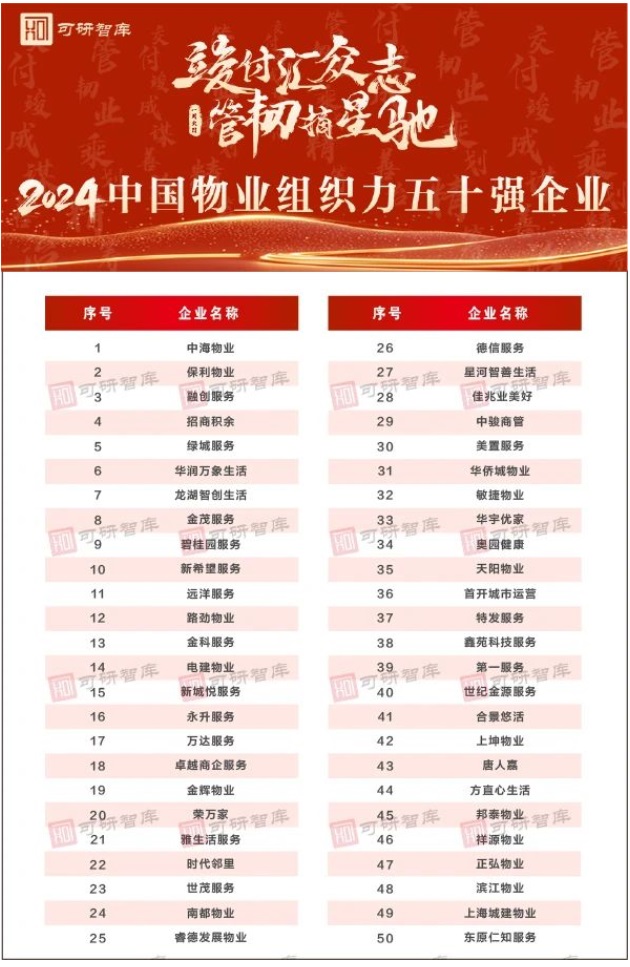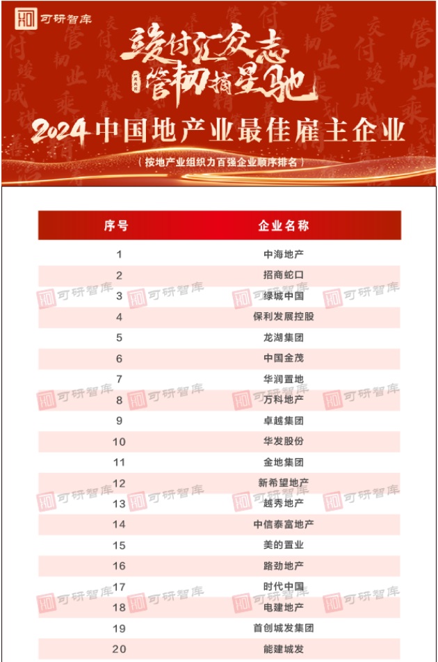 更多數據請關注并咨詢:可研智庫《2024中國地產、物業組織力及雇主影響力研究報告》。