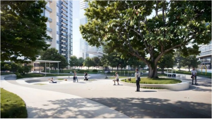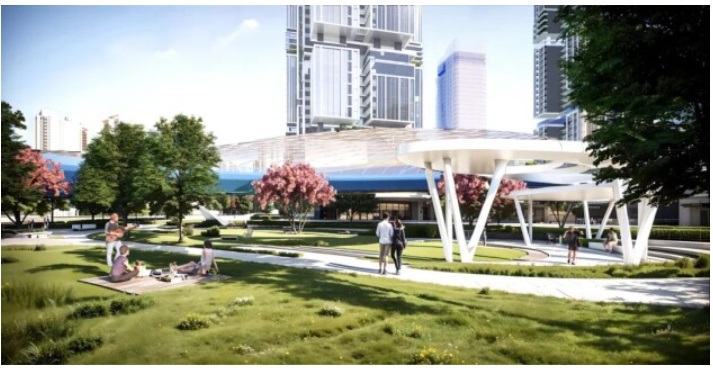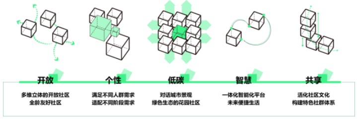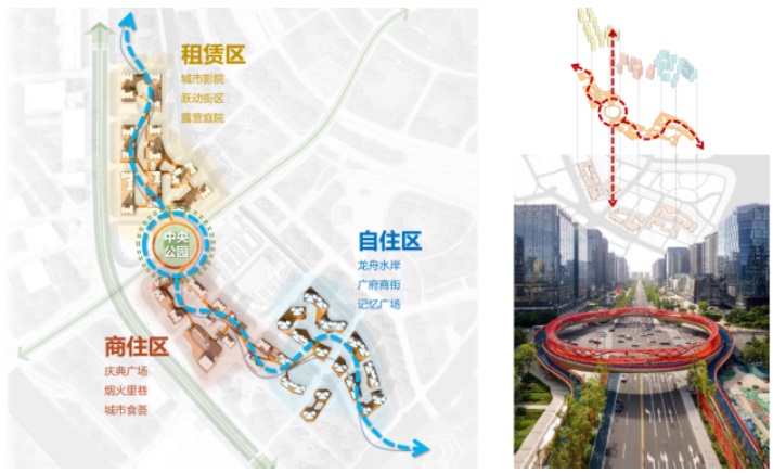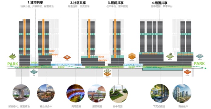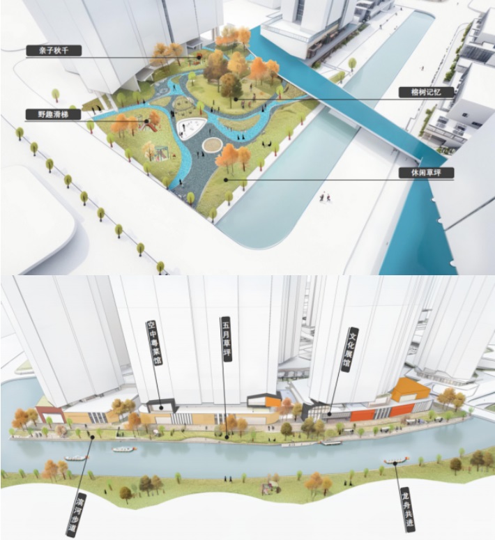 在租賃區、商業區和保障房住區構建多個景觀節點,打造家園、公園、樂園一體的三園合一公園城市。