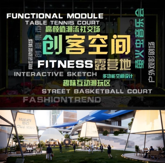 租賃區、商住區與自住區三大獨立而又和諧共生的組團,各分區在保持獨立性的同時,通過精妙的空間布局與功能設計,實現了彼此之間的無縫銜接與和諧互融。分別是聚焦創新與活力的創客空間、注重生活品質與文化氛圍的美食中心、自然景觀與居住空間完美融合的榕樹庭院主題社區。