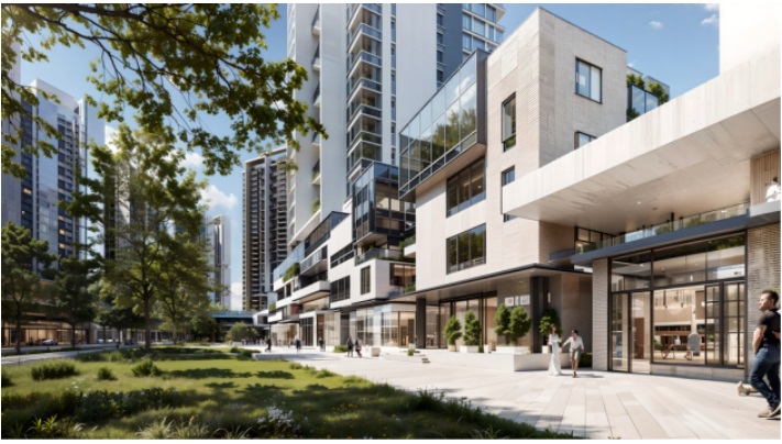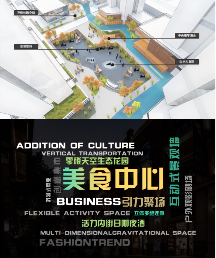 商住區,我們則注重生活品質與文化氛圍的營造,以美食中心為主題,構建了一個集餐飲、休閑、娛樂于一體的綜合性商業空間。美食中心、日咖夜酒、生態花園等沉浸式活力街區,滿足了人民日常精神及物質的需求。