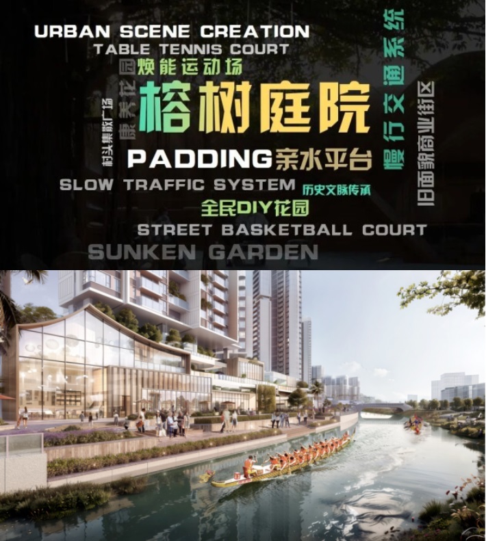 此外,我們還規劃了城市影院、露營庭院、慶典廣場、榕樹廣場及龍舟水岸等一系列豐富的生活、娛樂、購物空間,這些空間不僅豐富了社區的功能與內涵,更為舊村的未來發展注入了新的生機與活力。