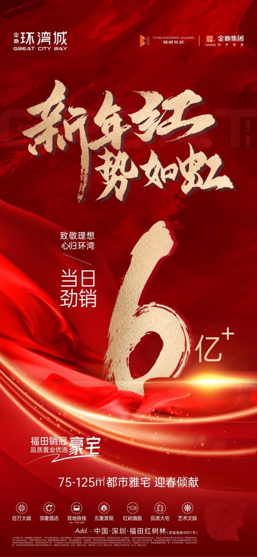 在深圳積極支持房地產投資回復增長的同時,2025年開年,深圳樓市迎來了部分優質項目的“開門紅”。金地環灣城正是其中的最大贏家:1月25日,金地環灣城加推建面約75-125㎡都市雅宅,單日勁銷6億+,創下深圳樓市開年銷售紀錄。這一亮眼成績不僅彰顯了項目的市場號召力,更印證了其作為深圳“流量+品質”雙料標桿的行業地位。