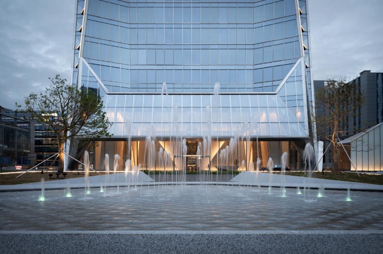由AECOM擔任設(shè)計的“都市哲疊”中央景觀廣場,以水景,四時景觀禮序共融,營造賓至如歸的辦公場景;東廣場設(shè)置聚會和休憩空間,西廣場結(jié)合穹頂一體式雨棚,與立面折面設(shè)計相呼應(yīng),打造無風雨落客平臺;