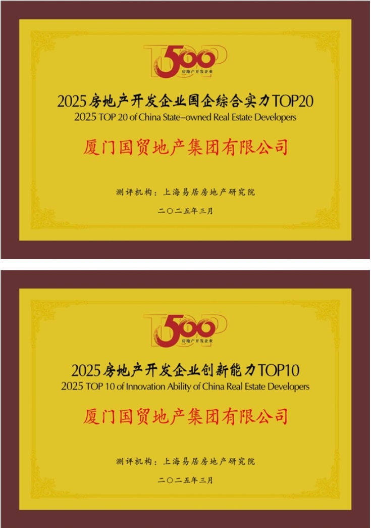 此外,在國企綜合實力、創(chuàng)新能力、產(chǎn)品力等細(xì)分領(lǐng)域,國貿(mào)地產(chǎn)斬獲了“2025房地產(chǎn)開發(fā)企業(yè)國企綜合實力TOP20(第14位)、2025房地產(chǎn)開發(fā)企業(yè)創(chuàng)新能力TOP10(第2位)“等多項殊榮,開發(fā)的福州國貿(mào)天琴灣榮獲“2025十大交付力高端作品”、廈門天樾云頌榮獲“2025典型項目”。