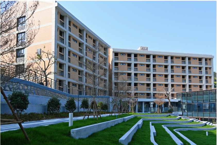 在建筑風格上,新樓群延續校區原有肌理,采用分散式布局,與既有宿舍區和諧相融。立面設計巧妙提取閩南傳統建筑元素,以磚紅色為主色調,搭配白色線條與灰色基座,既呼應校園歷史風貌,又通過簡潔靈動的網格肌理展現現代學院氣質。功能布局兼顧實用性與人性化;綜合樓內教學、辦公、生活服務三大功能高效分區,6.6米標準柱網靈活適配多樣化場景,滿足普通教室、實驗室、會議室等需求。
