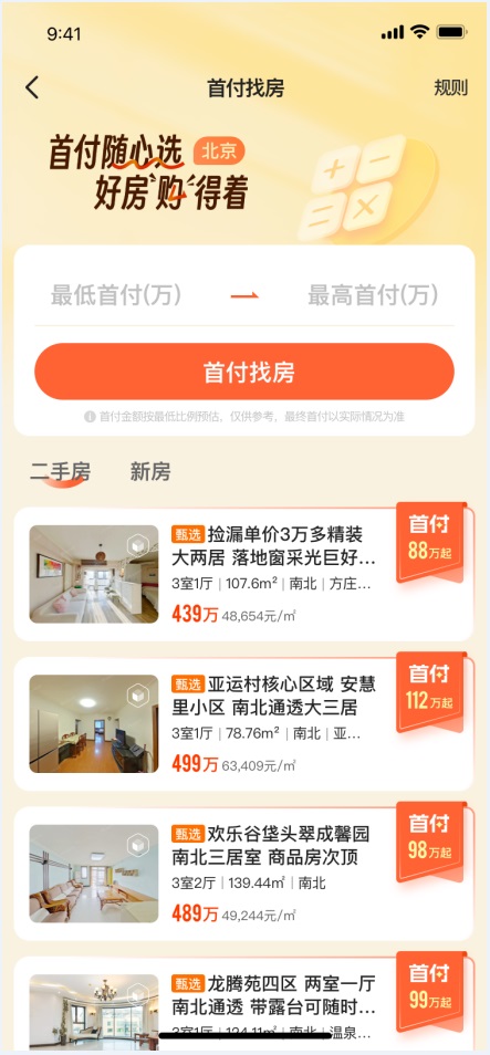 北京朝陽區劉先生對此深有體會:“使用‘首付找房’功能,輸入首付預算上下限金額,我們僅用10秒就篩選出符合條件的備選房源,再結合區域、戶型、樓層等需求,很快鎖定了心儀目標。”
