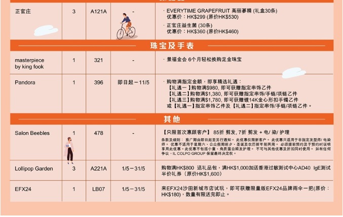 購物滿HK$800贈送RMB30元支付寶交通代金券,滿HK$7000贈送HK$100萬寧禮券和HK$1200電子禮券,滿HK$20000贈送HK$150萬寧禮券和HK$3300電子禮券,若2萬消費內包含有HK$1000以上的服飾消費,還可額外獲贈海洋公園門票一張,送你去和城中最熱門的熊貓寶寶們親臨見面!