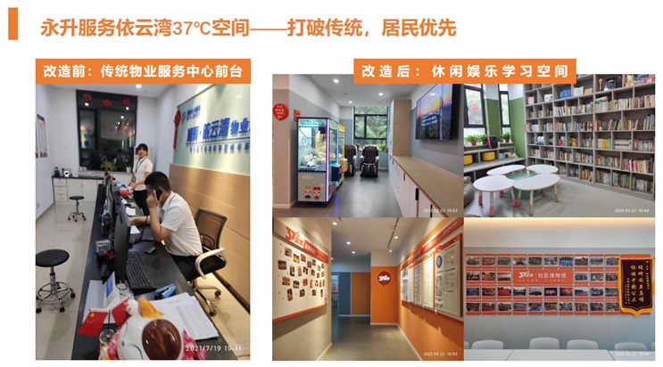 目前,永升服務全國已有超100個具備條件的住宅小區對物業用房完成改造,未來永升37℃空間將會推廣至永升服務全國更多在管住宅小區,通過共享化改造、收益反哺及數字化管理等手段,實現空間價值最大化,讓37度的溫暖傳遞到更多社區。