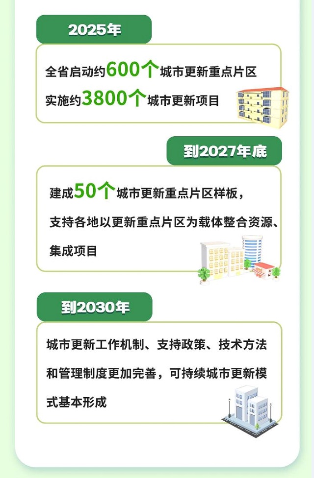 四川經濟網訊(記者 李洋)6月12日,記者從四川省住房和城鄉建設廳官網獲悉,近日,四川省住房和城鄉建設廳、四川省發展改革委、四川省財政廳、四川省自然資源廳、國家金融監督管理總局四川監管局聯合印發了《四川省實施城市更新行動方案》(簡稱《行動方案》)。《行動方案》提出,2025年,全省要啟動約600個城市更新重點片區,實施約3800個城市更新項目,持續改善城市功能品質,建設高品質宜居空間。