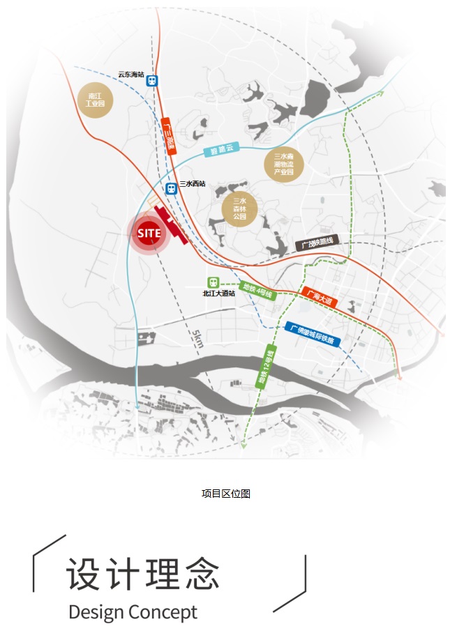 Located in Foshan's Sanshui District industrial hub, the project spans three plots (A, B, C) as a 318,000㎡ integrated park combining manufacturing, electronics, R&D, and living facilities. It aims to be a Greater Bay Area 3.0 model for interconnected, eco-friendly, and industry-city synergy.