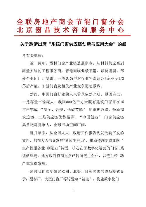 關于邀請出席“系統門窗供應鏈創新與應用大會”的函