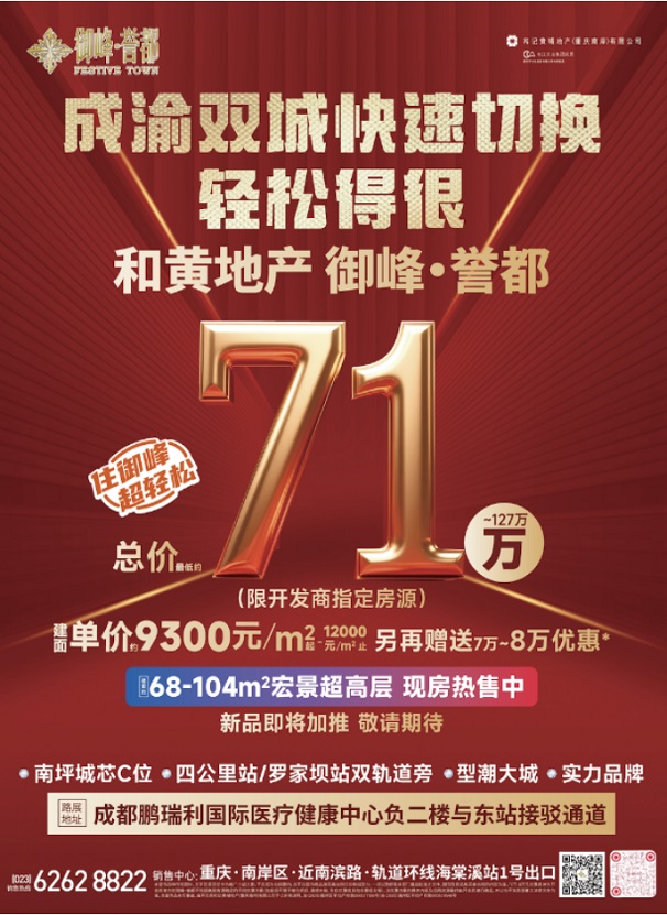但是,現在,你覺得不可能的這個“賣房不等式”,竟然在一個項目上,完全實現了,這就是——重慶和黃·御峰;