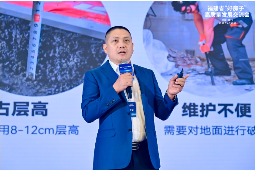 福建沃豪科技集團有限公司副董事長詹友仁以“有溫度更有愛”為主題,闡述了如何以科技賦能好房子產品力升級。對傳統地暖占層高、維護不便、跑冒滴漏等行業痛點,沃豪科技通過自主研發納米碳晶技術和智慧供暖系統構建,打造新型電熱地板產品,為消費者提供更便捷、高效、精準的供暖體驗。