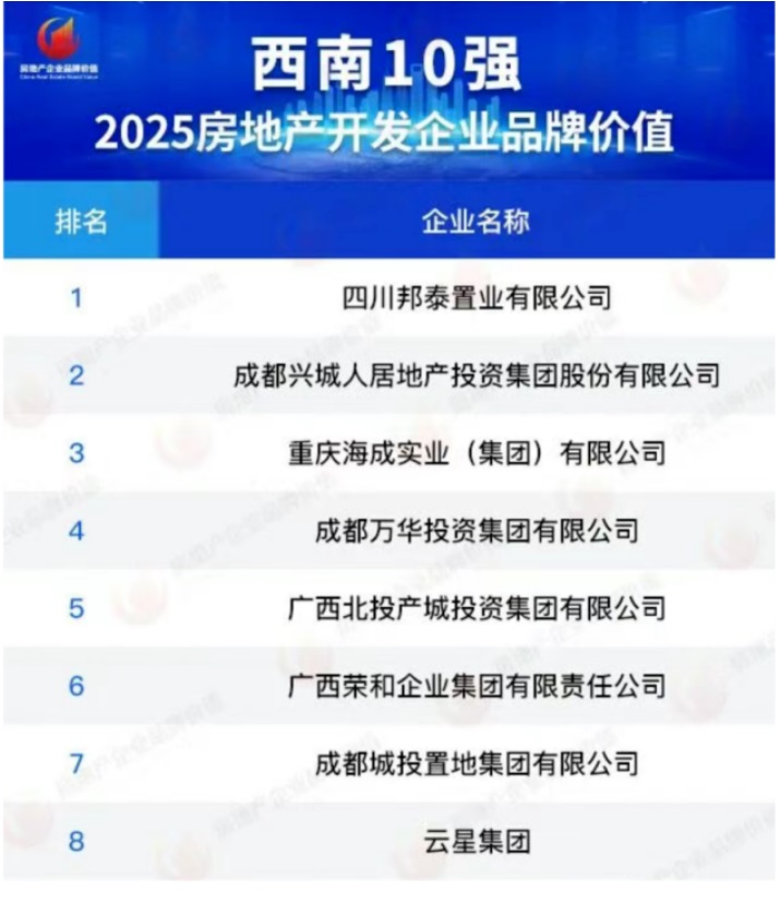 據(jù)中國房地產(chǎn)業(yè)協(xié)會(huì)、上海易居房地產(chǎn)研究院與克而瑞集團(tuán)聯(lián)合發(fā)布的《2025房地產(chǎn)企業(yè)品牌價(jià)值測評研究報(bào)告》顯示,邦泰集團(tuán)憑借其堅(jiān)實(shí)的品牌積淀與戰(zhàn)略聚焦,成功躋身克而瑞榜單西南片區(qū)TOP1,成為品牌價(jià)值攀升的典型代表。這一排名并非偶然,其背后是邦泰一系列扎實(shí)業(yè)績數(shù)據(jù)的支撐:從進(jìn)一城深耕一城的城市布局的廣度,到單城項(xiàng)目的熱銷深度;從超越行業(yè)標(biāo)準(zhǔn)的產(chǎn)品配置,到高達(dá)98%的客戶滿意度,邦泰的品牌實(shí)力正通過這些硬核指標(biāo)得到充分驗(yàn)證。
