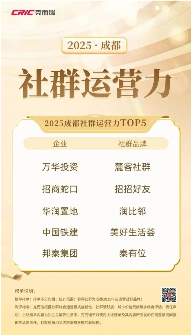 邦泰集團(tuán)品牌價(jià)值的構(gòu)建,還體現(xiàn)在其社區(qū)服務(wù)創(chuàng)新上。“泰有位”社群體系致力于營造“邦泰沒有陌生人”的社區(qū),自2024年成立以來,成功孵化400余個(gè)社群組織,累計(jì)發(fā)起1000余場社群活動(dòng),不僅提升了業(yè)主滿意度與品牌美譽(yù)度,更助力在售項(xiàng)目的客戶轉(zhuǎn)化,實(shí)現(xiàn)了“口碑與業(yè)績”的雙豐收,也讓邦泰斬獲“2025 成都社群運(yùn)營力 TOP5”榮譽(yù)。