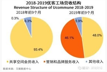 反觀另一大聯合辦公品牌優客工場,同樣在逆勢中探索。對比優客工場近年的營收結構數據不難看出,2018年前三個季度當中,聯合辦公業務為該公司貢獻了絕大部分的營收,而依靠租金的單一盈利模式一直是聯合辦公企業被詬病最多的地方,這點可能會是影響資本推進的關鍵因素。為了優化營收結構、提升風險抵御能力,優客工場通過收購營銷公司等方式,在2019年的營收結構中大幅提升營銷和品牌服務的占比。這一劑“猛藥”的效果尚待觀察,但要真正擺脫對租金收入的重度依賴,優客工場或許仍有很長的路要走。