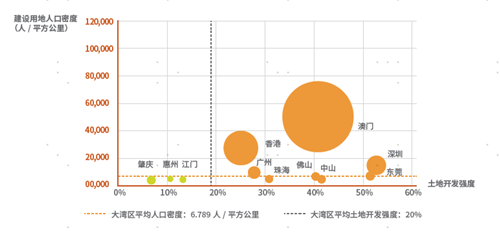 2018年粵港澳大灣區(qū)城市土地開(kāi)發(fā)強(qiáng)度、人口密度和單位產(chǎn)值(圖源:《華潤(rùn)置地城市更新白皮書》)